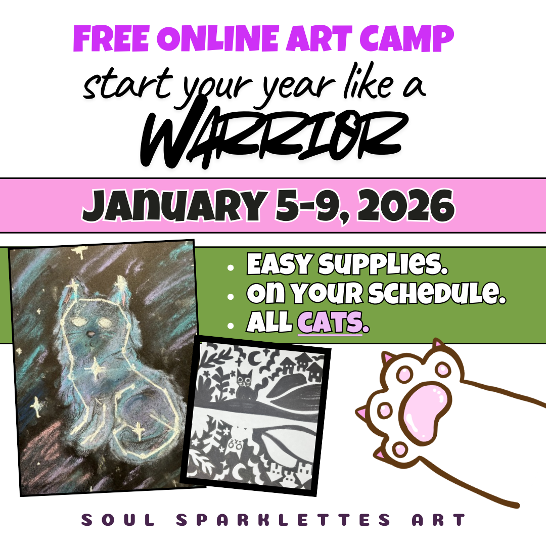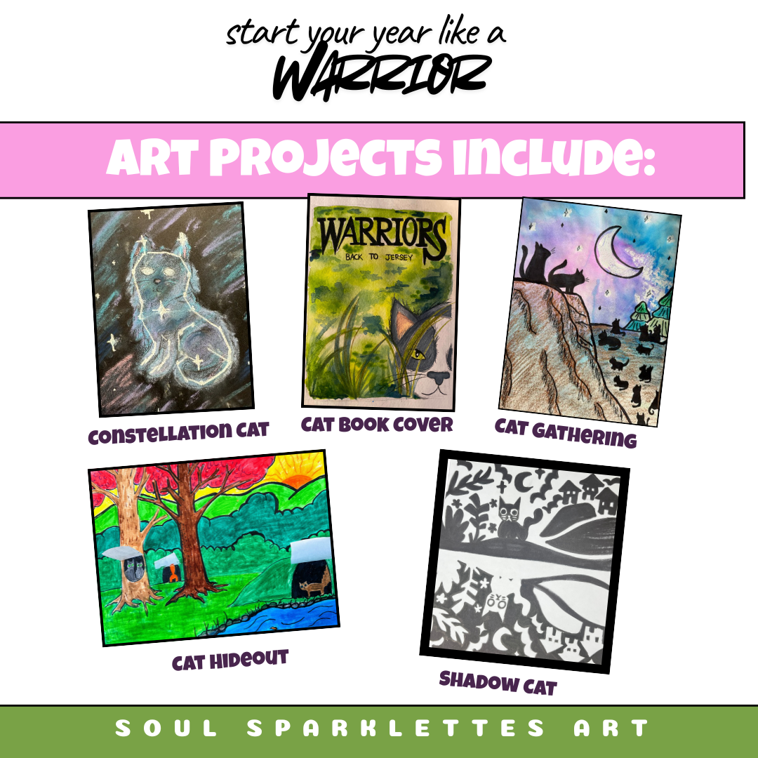 Welcome to Start Your Year Like a Warrior — a completely FREE online art camp, inspired by my cat Jezzi, and the epic spirit of the much-loved Warriors series by Erin Hunter (whose books my own kids can't put down!).
